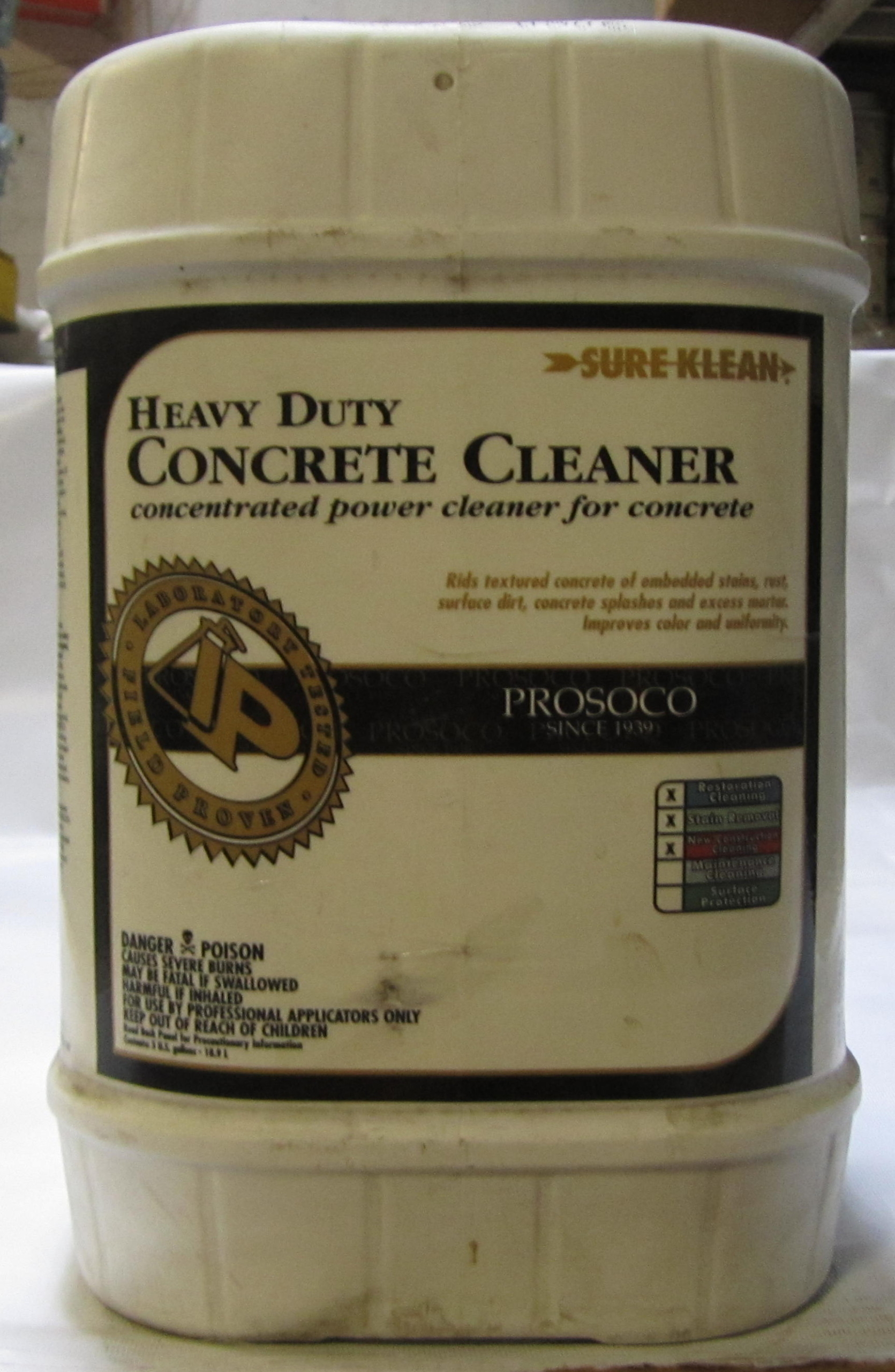 Sure Klean® Heavy Duty Concrete Cleaner is formulated for removal of concrete splashes, excess mortar, retarders, heavy efflorescence, embedded stains, rust and surface soiling from textured concrete surfaces.